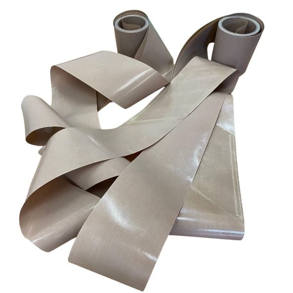 Băng tải chịu nhiệt PTFE là một loại vật liệu không dẫn điện được sử dụng rộng rãi trong các ứng dụng công nghiệp nơi cần chịu nhiệt độ cao và môi trường hóa chất khắc nghiệt. Với khả năng chịu nhiệt độ lên đến 260 độ C (500 độ F), băng tải chịu nhiệt PTFE thường được sử dụng trong quá trình sản xuất thực phẩm, công nghiệp hóa chất, và làm khuôn đúc. Đặc tính không dính tự nhiên của PTFE giúp ngăn chặn sự dính kết của các vật liệu như dầu mỡ, keo dán, hoặc các chất lỏng khác, làm cho nó trở thành lựa chọn lý tưởng cho các ứng dụng yêu cầu sự trơn tru và không dính.
