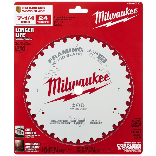Lưỡi cưa vòng Milwaukee 48-40-0720 190 x 25.4mm 24T thực chất là lưỡi cưa đĩa (circular saw blade) chuyên dùng để cắt gỗ, đặc biệt phù hợp cho các công việc dựng khung (framing), cắt gỗ mềm, gỗ cứng, ván ép, ván dán, OSB và các loại gỗ kỹ thuật khác.