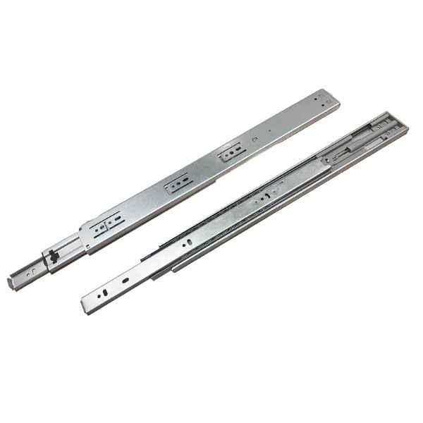 Ray trượt bi 3 tầng giảm chấn là dòng ray cao cấp có tích hợp cơ cấu hãm lực cuối hành trình, giúp đóng hộc kéo chậm và êm, tránh va đập mạnh và giảm tiếng ồn. Với thiết kế 3 tầng mở rộng toàn phần, ray trượt bi cho phép kéo hoàn toàn hộc kéo ra ngoài, tiện lợi cho việc lấy dụng cụ, linh kiện hoặc vật tư ở sâu bên trong.
